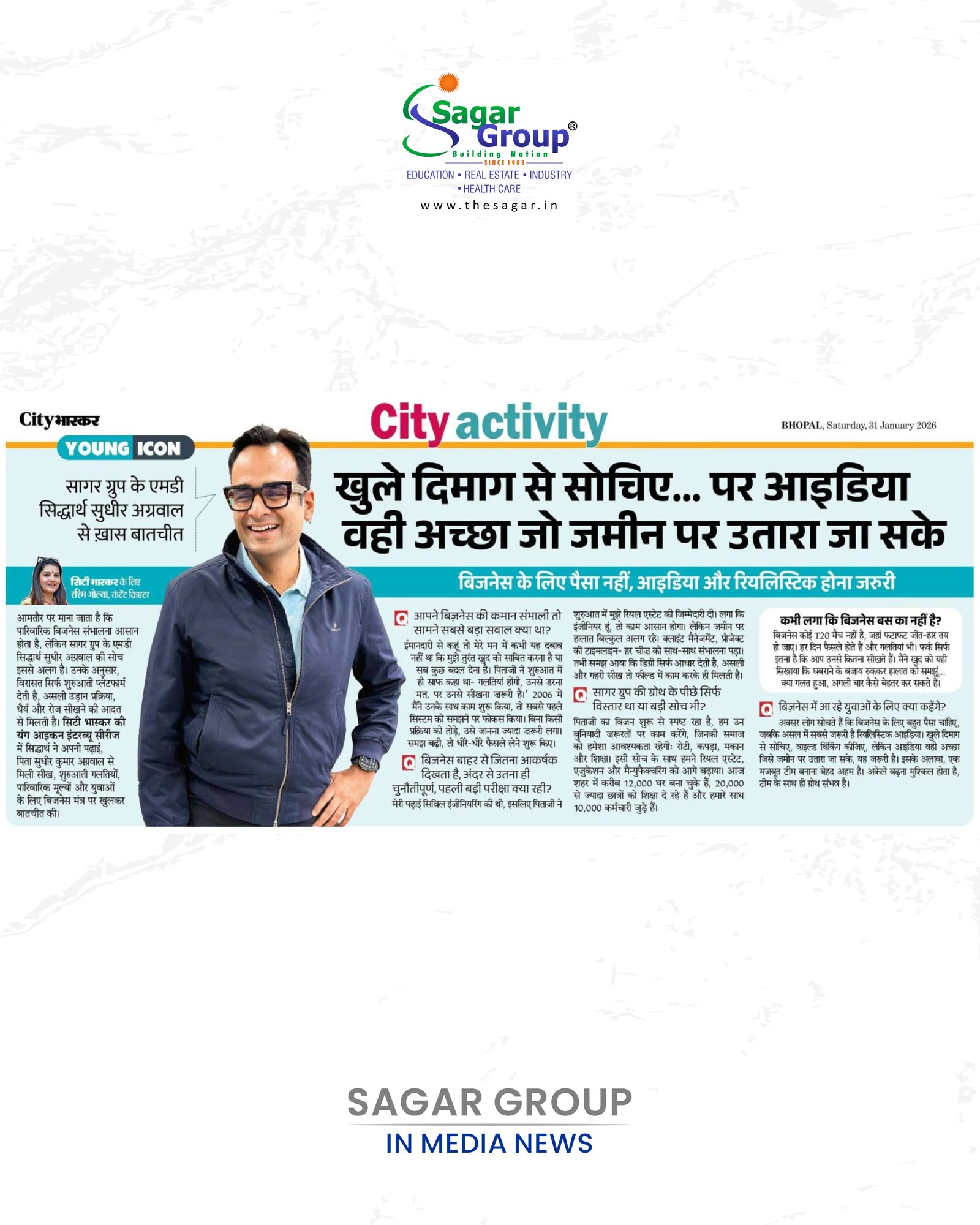 सागर ग्रुप के एमडी सिद्धार्थ सुधीर अग्रवाल से ख़ास बातचीत