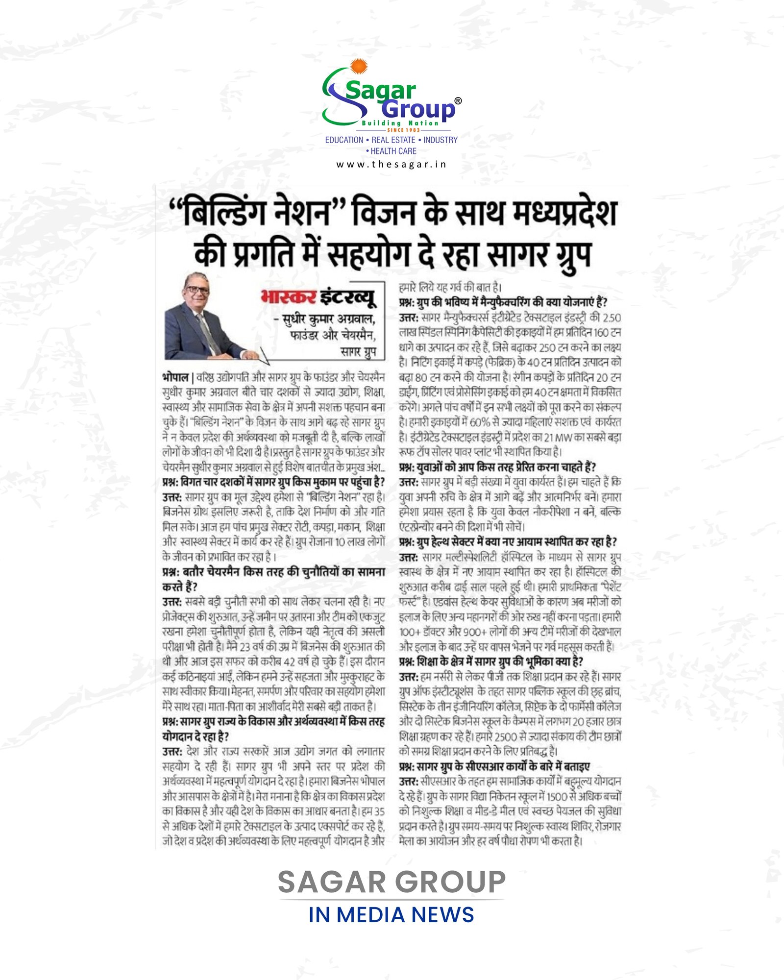 Sagar group is cooperating in the progress of Madhya Pradesh with "Building Nation" vision.