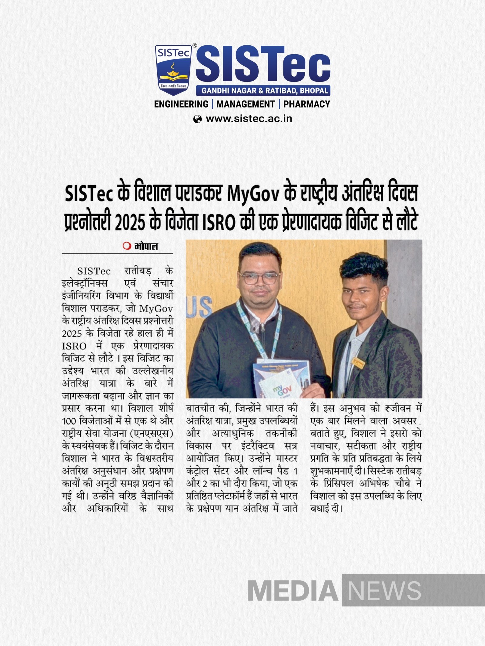 SISTec के विशाल पराडकर ISRO की प्रेरणादायक विजिट से लौटे!